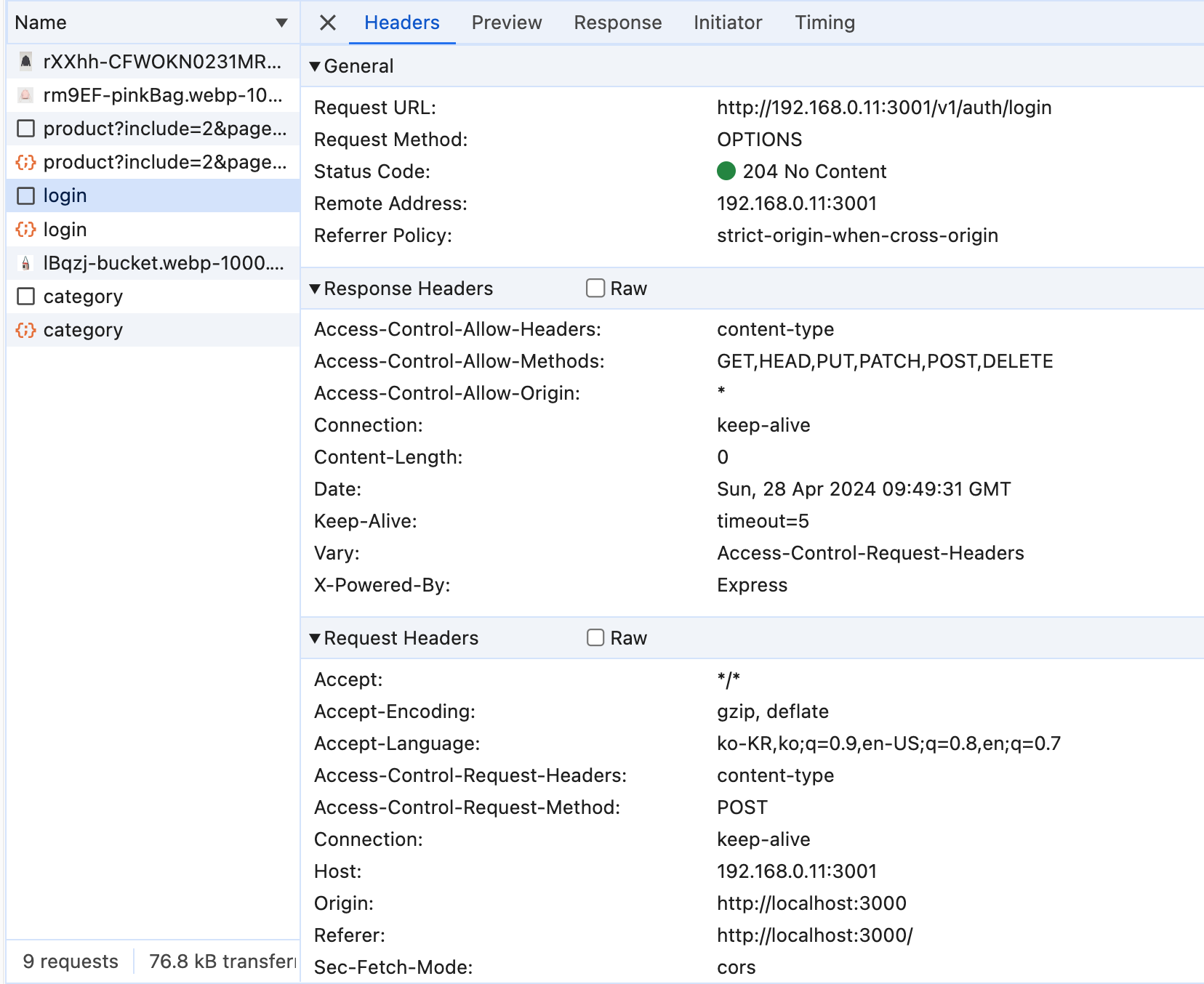 - Access-control-allow-origin에 * 와일드카드를 넣을 수 없음 (쿠키나 인증헤더 값은 민감해서!)