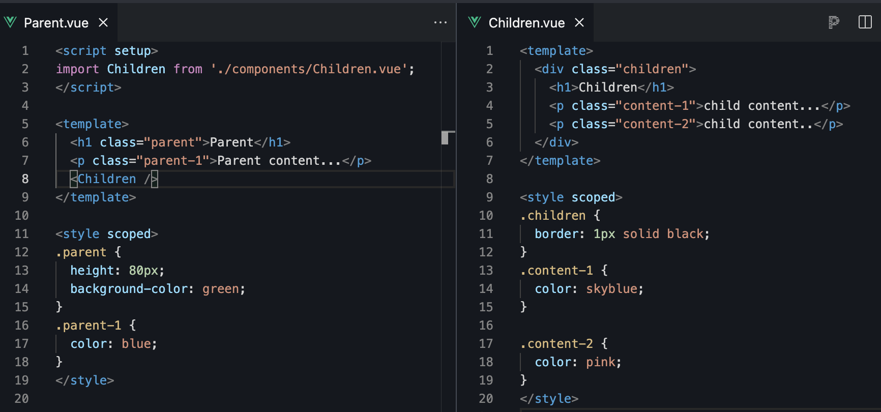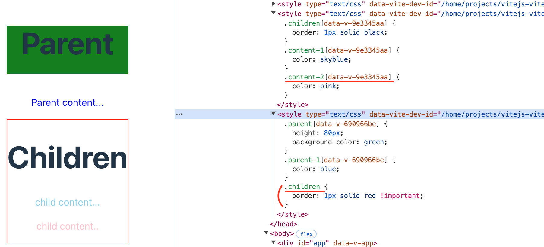 .children은 이제 스코핑이 무시되어 랜덤한 접두사 같은것이 붙지 않고