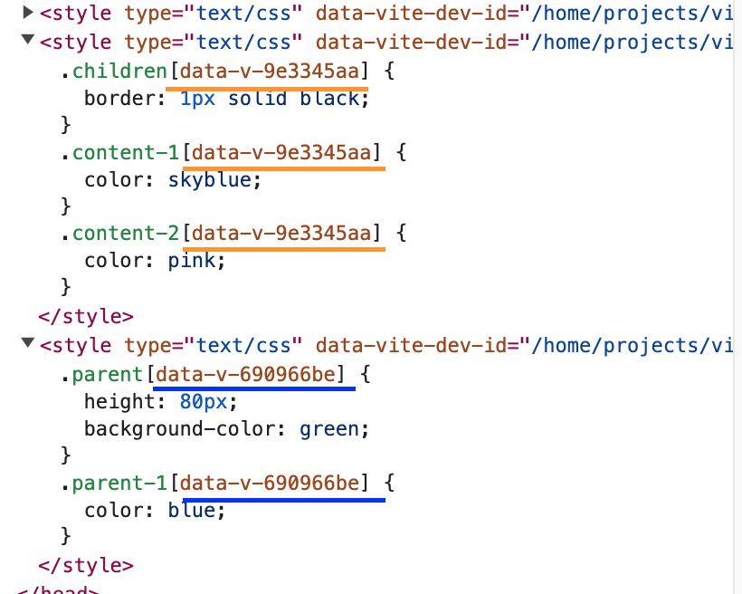 만약, 두 컴포넌트에서 동일한 클래스명을 쓰더라도 서로 다른 접두사가 추가되어 서로 충돌나지 않는다.