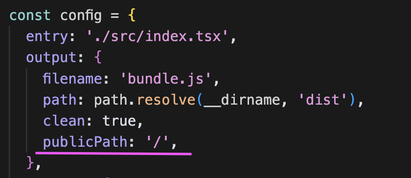- publicPath: '/' : 모든 에셋(JS, CSS, Html, 등)을 루트 경로 기준으로 로드