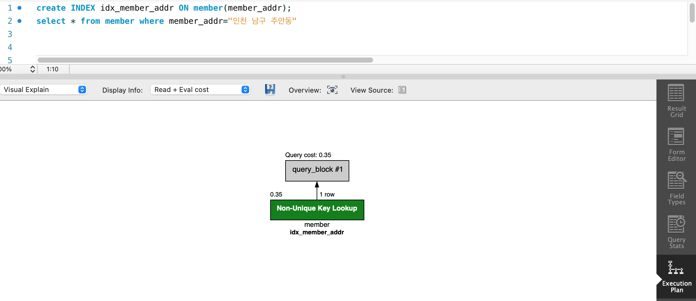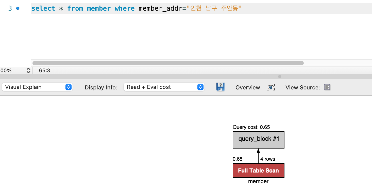 member 테이블의 member_name 열에 인덱스를 지정한다.