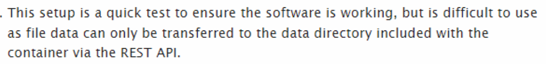 파일 데이터는 REST API를 통해 컨테이너에 포함된 데이터 디렉터리로만 전송할 수 있으므로 사용하기 어렵다.