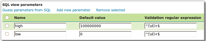viewparams: `low:0;high:99` // !! 파라미터 값 주입