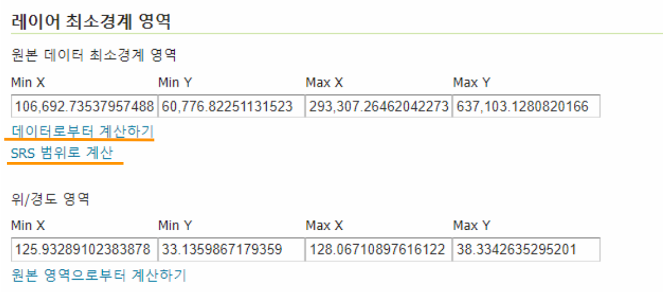 - 네이티브에서 재투영 : 소스 데이터가 EPSG 코드와 일치하지 않는 경우만 사용