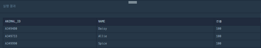 [예제] ANIMAL_OUTS 테이블의 ANIMAL_ID, NAME 컬럼과 ANIMAL_INS 테이블의 ANIMAL_TYPE 수