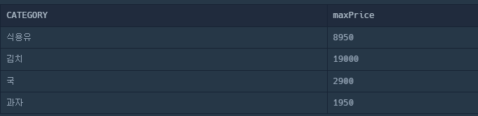 // 1. 카테고리가 ~인 테이터를 가지고 가상의 동적 테이블을 만드는데, 이때 카테고리별 최대 값 컬럼을 넣어준다.