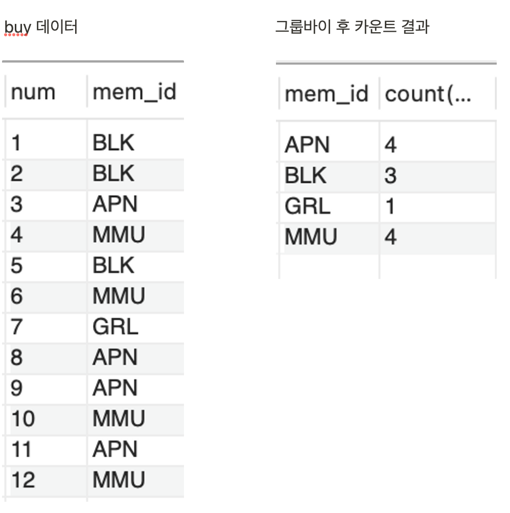 SELECT count(mem_id) FROM buy; -- 결과 : 12