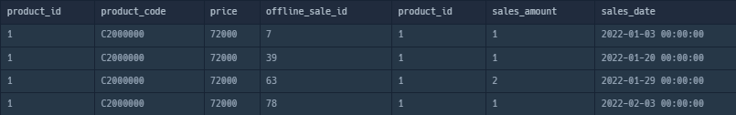 WHERE OFFLINE_SALE.PRODUCT_ID = 1 -- 3
