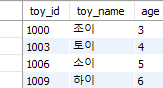 -- MYSQL : toy_id는 자동증가(AUTO_INCREMENT)